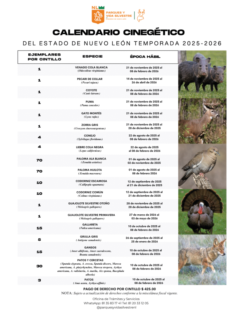 Estas temporadas son momentos en los que se permite la caza sostenible y se detallan de manera clara en las tarifas de aprovechamiento. En cada una de ellas, se presenta la oportunidad de equilibrar el aprovechamiento con la conservación de nuestras especies silvestres.